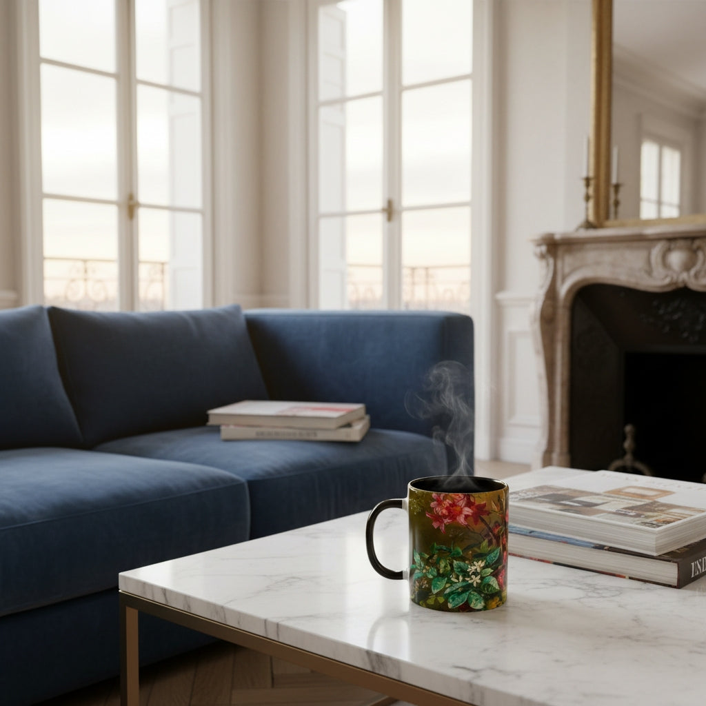 This custom ceramic mug features a full-wrap, top-to-bottom reproduction of Still Life with Flowers in a Greek Vase: Allegory of Spring by Dutch botanical master Georgius Jacobus Johannes van Os, celebrated for his luminous detail and classical composition. Blossoms spill from a sculptural Greek vase, creating a sense of renewal, abundance, and quiet seasonal energy with every glance.
